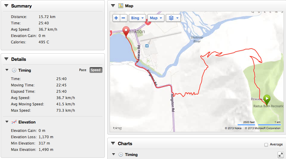 From Queenstown Beach, through town and out to Coronet Alpine Hotel